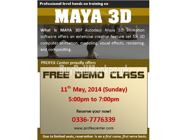 "MAYA 3D - FREE DEMO CLASS" is offered at PROFEX Center (Near NED University, Karachi)