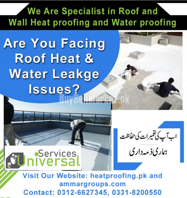We are Specialist in Heatproofing/ Waterproofing. Universal Services is one of the department of Ammar Group of Companies, and Universal Services is One of the Leading Company in Home services. We Provide You The Best Quaility of Roof Heatproofing and Waterproofing. Our Services are Heatproofing/ Waterproofing, Leakage/ Seepage and Epoxy Flooring/ Epoxy Paint. We Provide you 100% Works Satisfaction Guarantee! Not only written but with our services. We Always focusing on our Clients Desire and their Need.